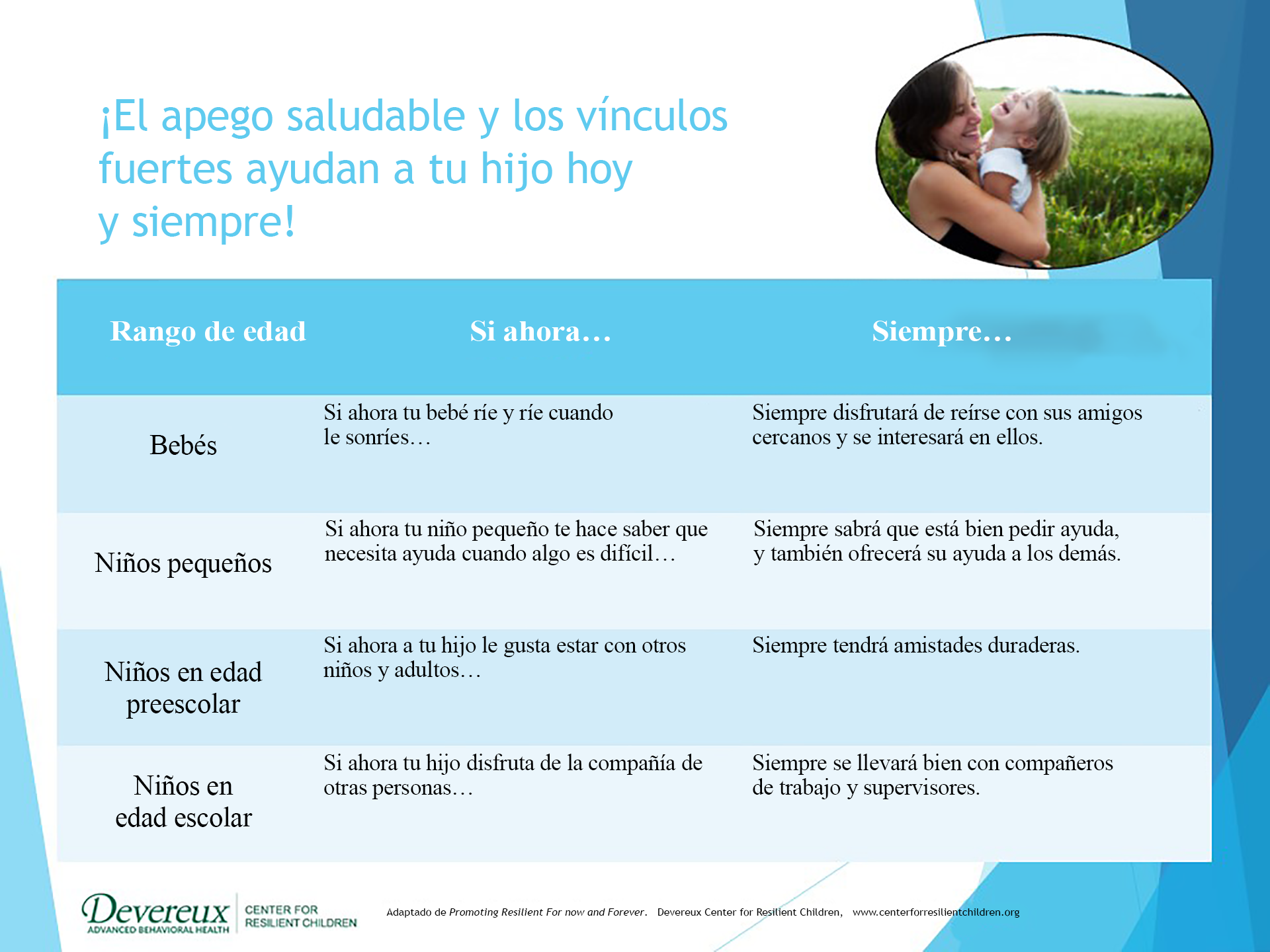 1. Apego/vínculos: el apego es la capacidad de crear y mantener conexiones positivas con los demás.